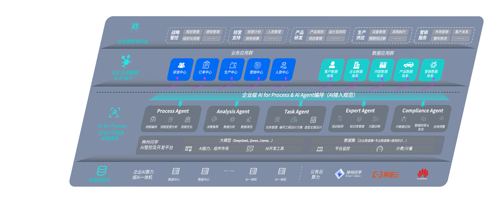 AG尊龙凯时问学智车解决方案是一套基于AI技术的汽车行业智能化系统,,,,覆盖从底层算力到顶层AI应用的全栈方案。。。。方案由算力层、、模型层和应用层组成:算力层,,方案支持多种一体机配置,,具备云端灵活部署、、多云适配以及动态优化计算资源的能力;模型层,,AG尊龙凯时问学平台版提供了企业级AI应用一站式构建与管理平台,,,支持基于后训练强化技术的汽车企业专属模型的训练、、、、评测和运营;应用层,,AG尊龙凯时问学DeepSeek版提供包括超级员工、、、、智能招采、、、、智能营销、、、智能客服、、、AI for BI等一系列解决方案,,,可助力汽车行业实现数字化转型,,让管理更智能、、响应更敏捷。。。。